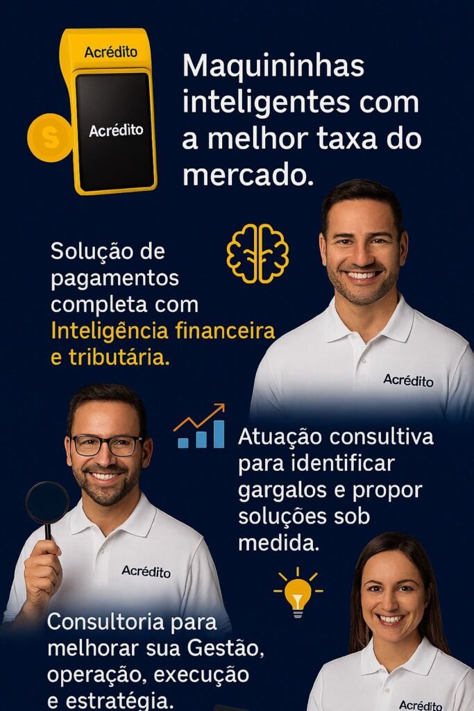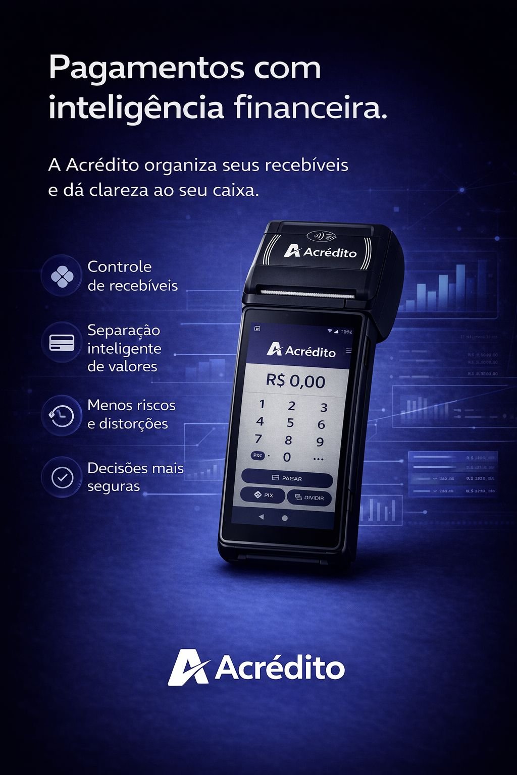 Com a Acrédito, você ganha eficiência na gestão do seu caixa, reduz custos e desperdícios e assume o controle total do seu fluxo financeiro — tudo em uma solução moderna, segura e inteligente que trabalha para o seu negócio prosperar todos os dias.”